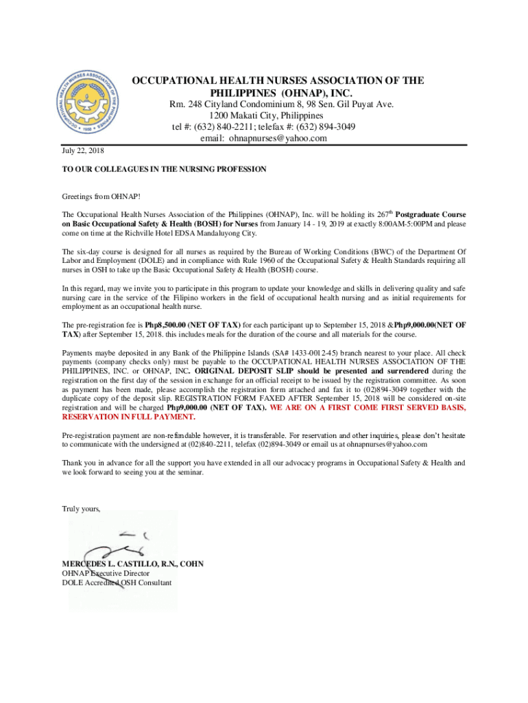 OCCUPATIONAL HEALTH NURSES ASSOCIATION OF THE PHILIPPINES (OHNAP), INC. Rm. 248 Cityland Condominium 8, 98 Sen. Gil Puyat Ave. 1200 Makati City, Philippines tel #: (632) 8402211; telefax #: (632)