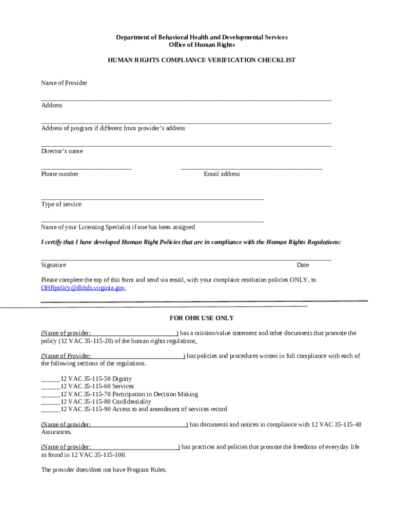 What is Get HUMAN RIGHTS COMPLIANCE VERIFICATION - dbhds virginia Form?