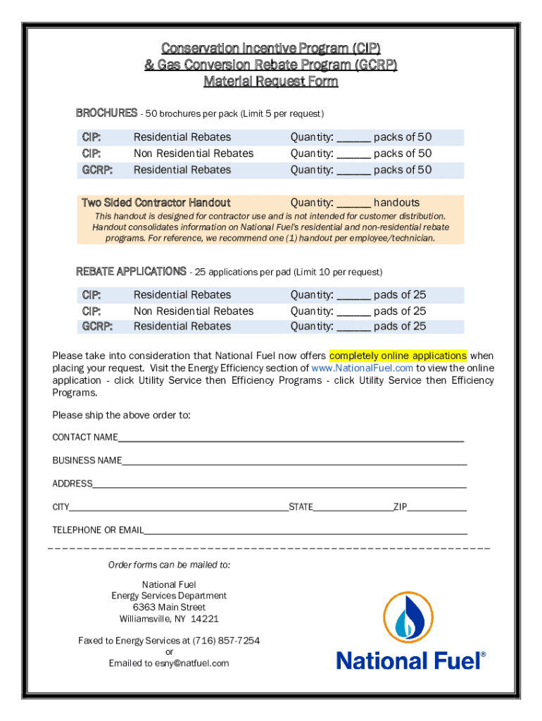 Conservation Incentive Program (CIP) & Gas Conversion Rebate Program (GCRP) Material Request Form BROCHURES 50 brochures per pack (Limit 5 per request) CIP: CIP: GCRP:Residential Rebates Non Residential