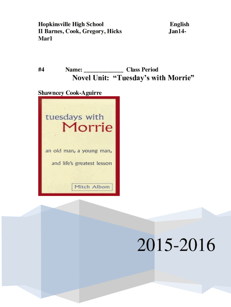 Get the free Novel Unit: Tuesday's with MorrieExercises Literature - images pcmac