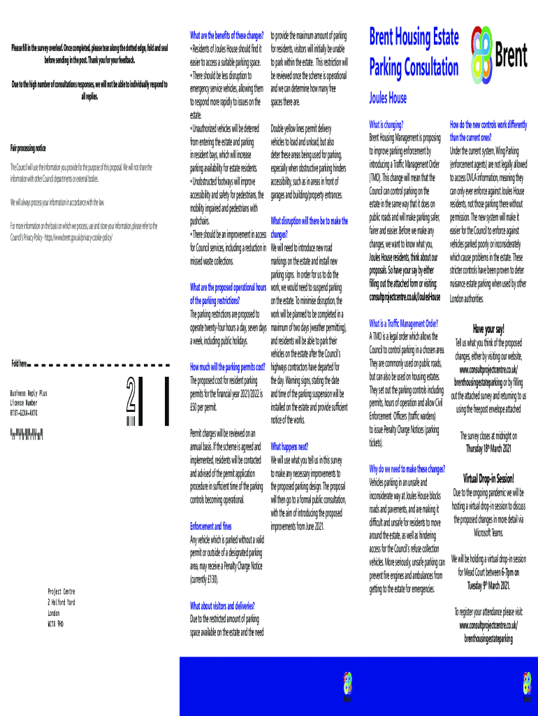 Please fill in the survey overleaf. Once completed, please tear along the dotted edge, fold and seal before sending in the post. Thank you for your feedback. Due to the high number of consultations