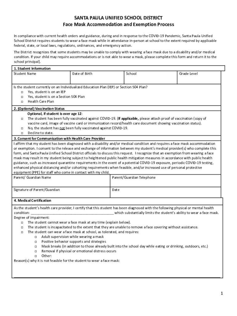 Face Mask Accommodation and Exemption Process