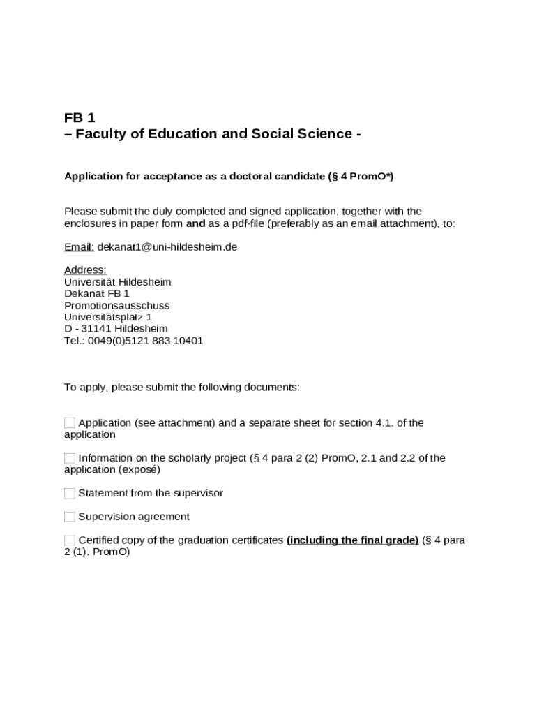 The FB 1Faculty of Education and Social Science is a Word document that should be submitted to the required address in order to provide specific information. It needs to be filled-out and signed, which is possible manually, or via a certain solution such as PDFfiller. It helps to fill out any PDF or Word document directly in your browser, customize it depending on your requirements and put a legally-binding e-signature. Right away after completion, the user can easily send the FB 1Faculty of Education and Social Science to the relevant person, or multiple ones via email or fax. The editable template is printable too due to PDFfiller feature and options proposed for printing out adjustment. Both in digital and in hard copy, your form will have got organized and professional appearance. Also you can turn it into a template to use it later, there's no need to create a new file from scratch. All you need to do is to amend the ready sample.