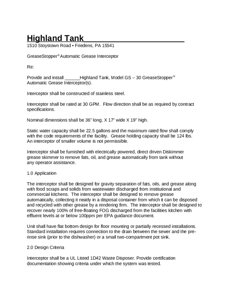 What is Highland Tank Offers Extensive Line of Premier Grease ... Form?