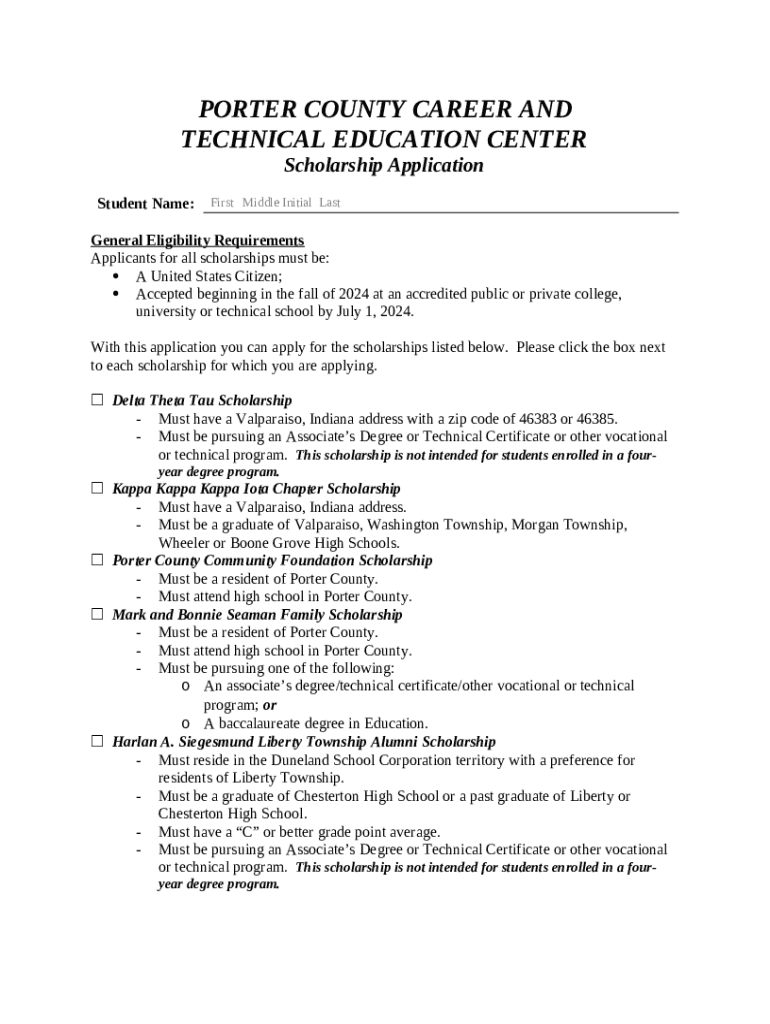 How to fill out Porter County Career and Technical EducationOpportunity ...