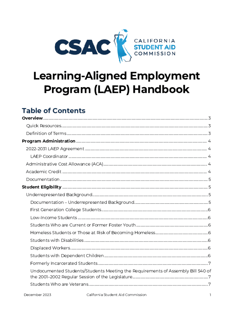 LearningAligned Employment Program (LAEP) Handbook Table of Contents Overview .....................................................................................................................................................................................