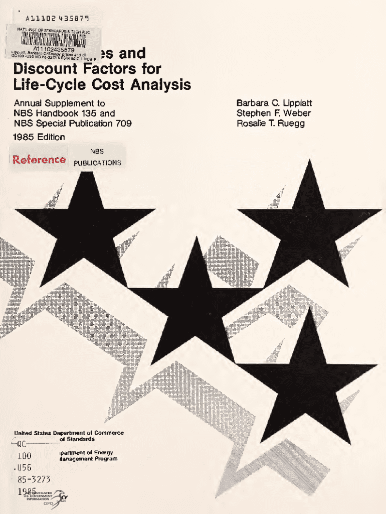A111DS 43Sfl7^All 102435879isandDiscount Factors for LifeCycle Cost Analysis Annual Supplement toBarbara C. LippiattNBS Handbook 135 and NBS Special Publication 709Stephen1985EditionNBS PUBLICATIONSUnited