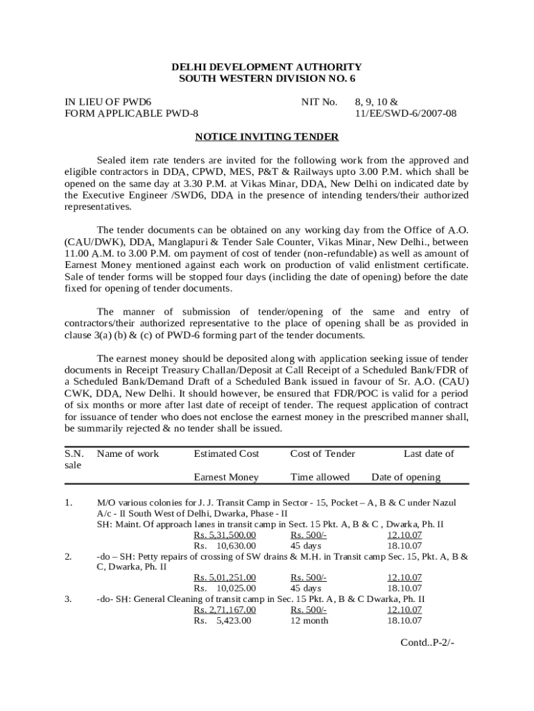 The IN LIEU OF PWD-6 - Delhi Development Authority is a writable document required to be submitted to the specific address to provide specific info. It must be filled-out and signed, which may be done manually, or by using a particular solution like PDFfiller. This tool allows to fill out any PDF or Word document directly from your browser (no software requred), customize it depending on your needs and put a legally-binding e-signature. Once after completion, you can easily send the IN LIEU OF PWD-6 - Delhi Development Authority to the appropriate receiver, or multiple recipients via email or fax. The template is printable as well thanks to PDFfiller feature and options presented for printing out adjustment. In both digital and in hard copy, your form will have got neat and professional appearance. It's also possible to turn it into a template for further use, so you don't need to create a new document from scratch. All you need to do is to amend the ready document.