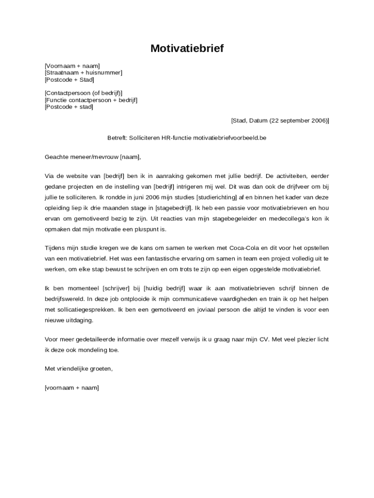 Instructions for the form Voorbeeld-motivatiebrief.doc