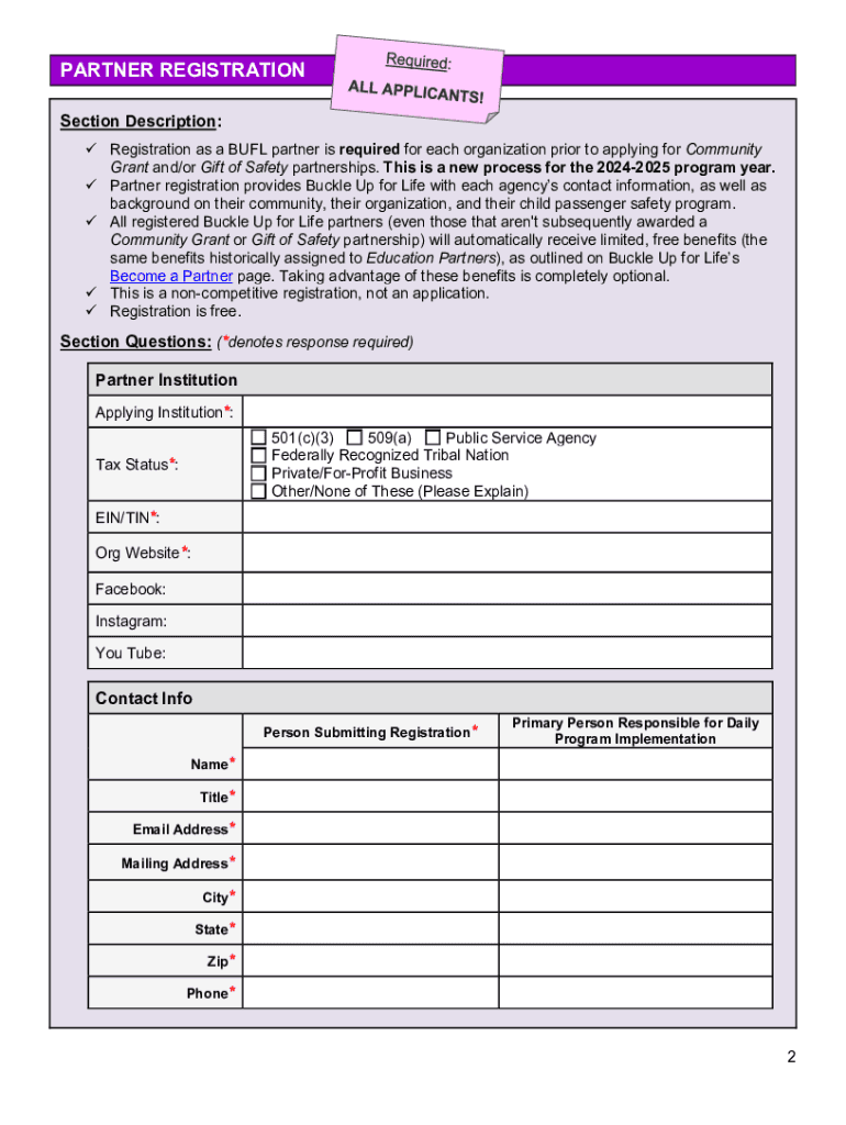 Common Partnership ApplicationPlanning Guide | 20242025 About this Planning GuideThis planning guide has been made available as a courtesy tool to help prospective Buckle Up for Life partners better