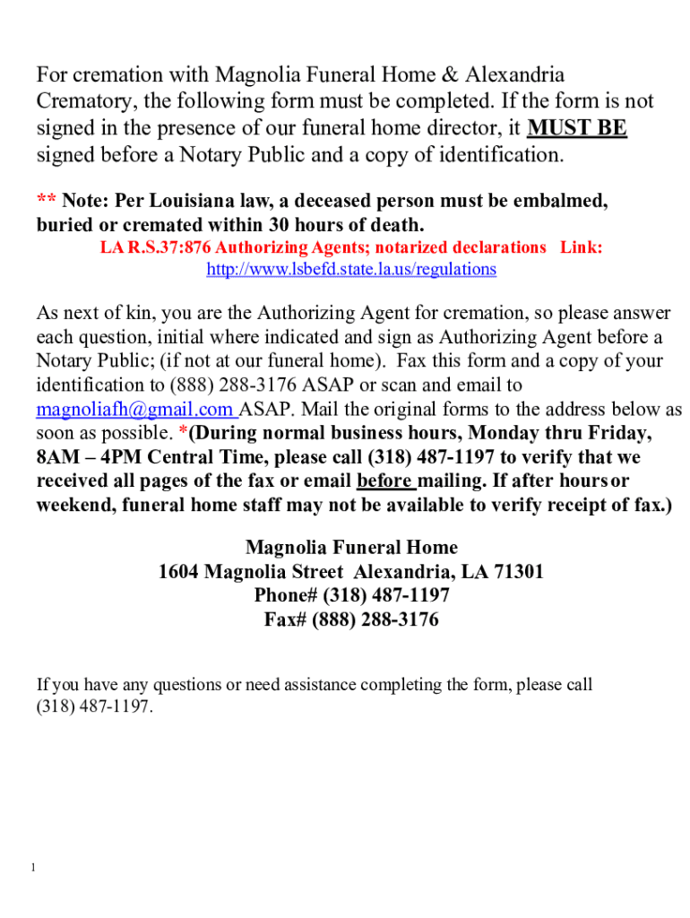 How to fill out antemortem cremation authorization form