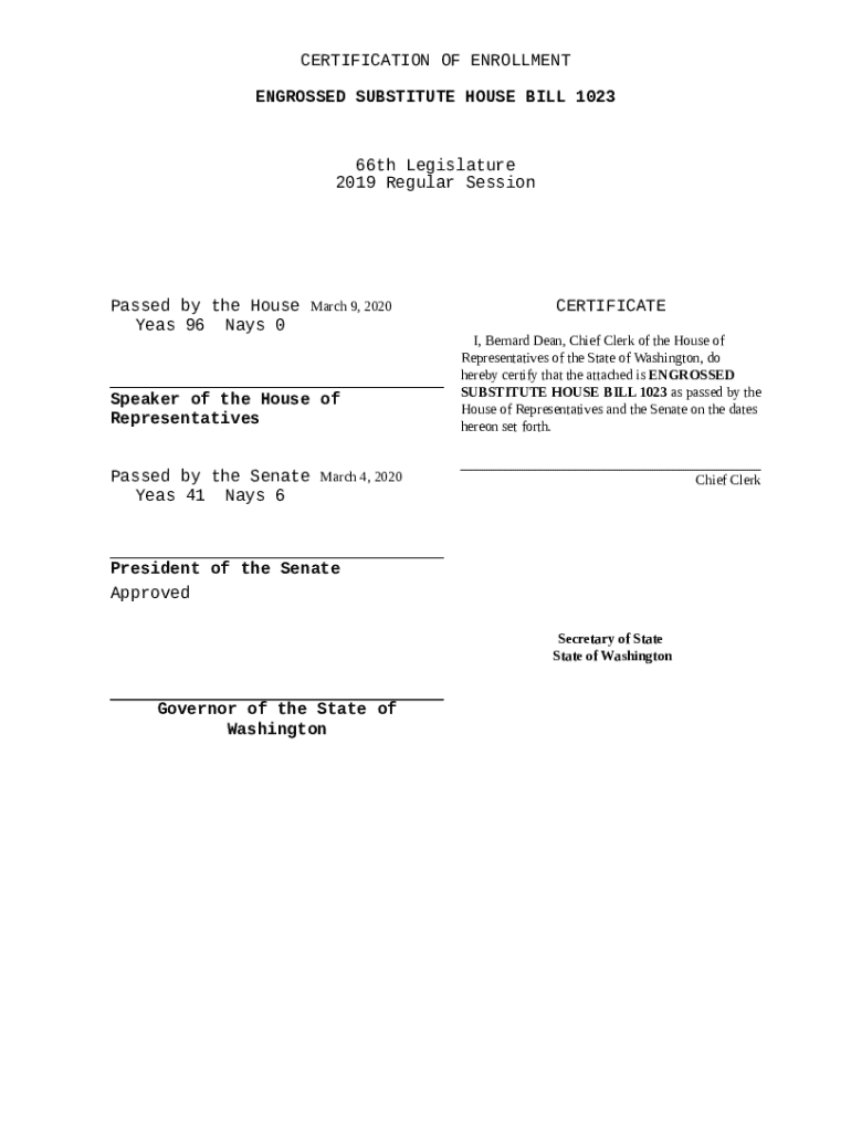 What is ENGROSSED SUBSTITUTE HOUSE BILL 1023 66th ... Form?