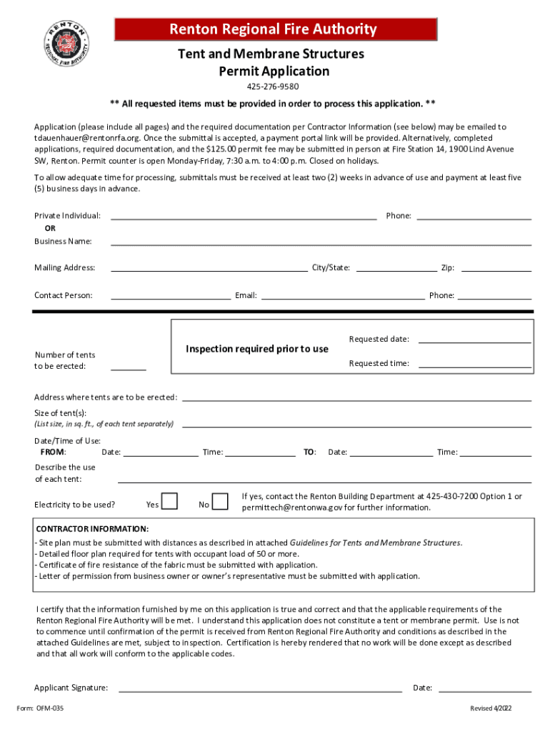Get the free Tent and Membrane Structures Permit Application
