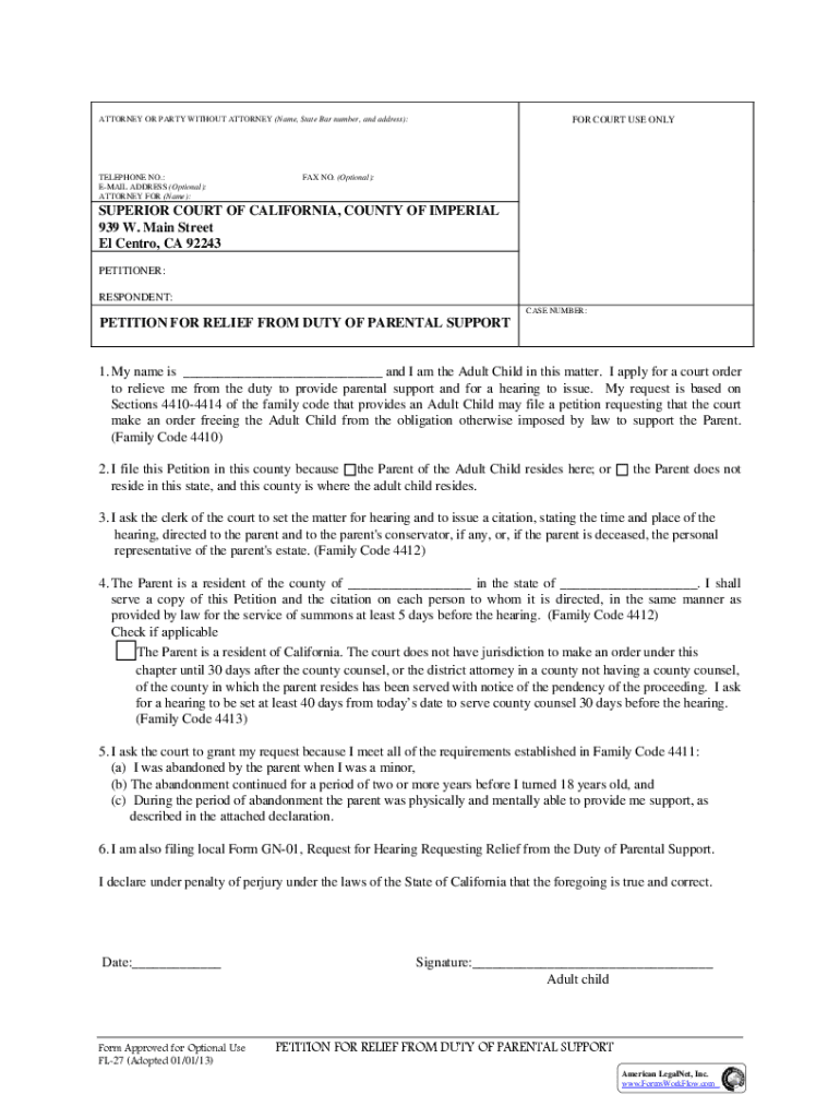 It is necessary for parties involved in family law cases in California who want to be represented by an attorney to fill out this form.