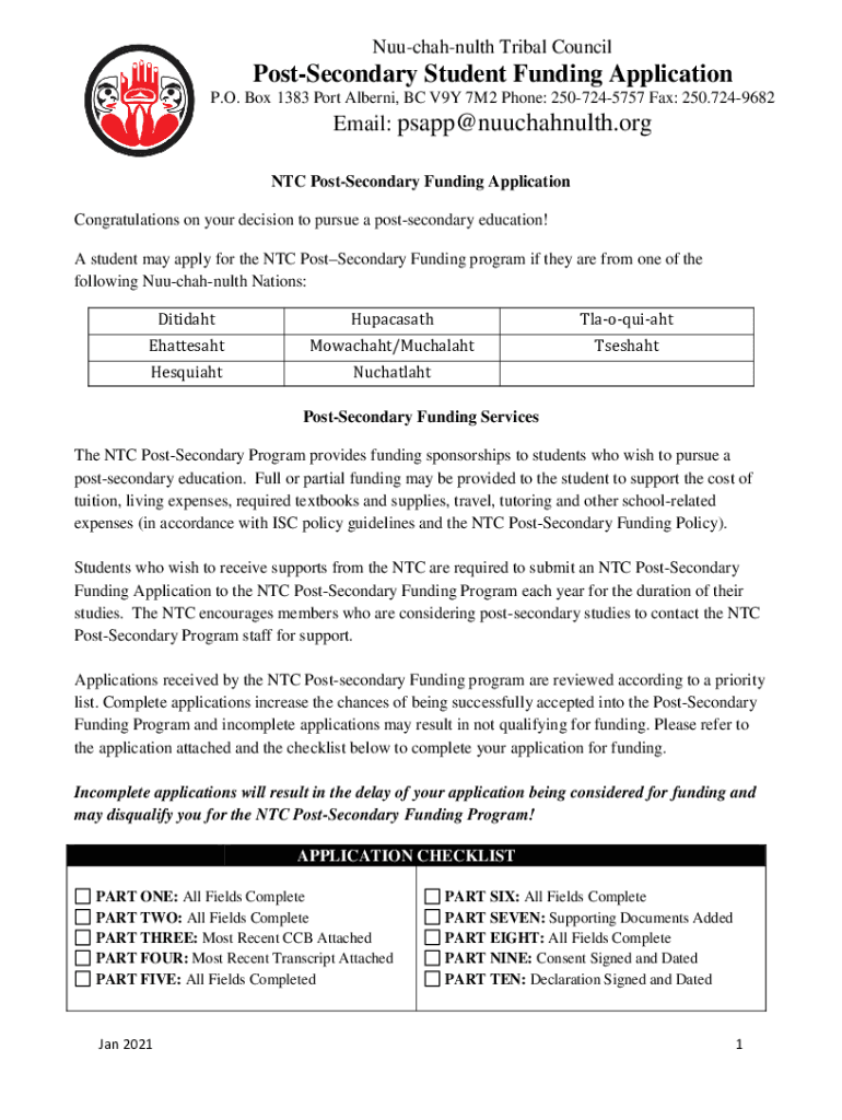 Nuuchahnulth Tribal CouncilPostSecondary Student Funding Application