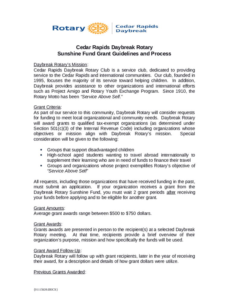 What is Sunshine Fund Grant ApplicationRotary Club of Cedar ... Form?