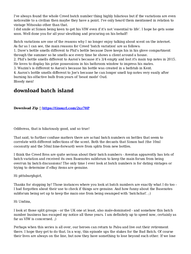 I\'ve always found the whole Creed batch number thing highly hilarious but if the variations are even noticeable to a civilian then maybe they have a point. I\'ve only heard them mentioned in relation