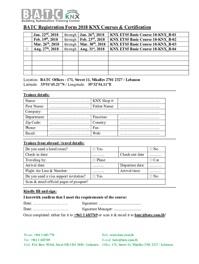 Get the free BATC Registration Form 2018 KNX Courses & Certification