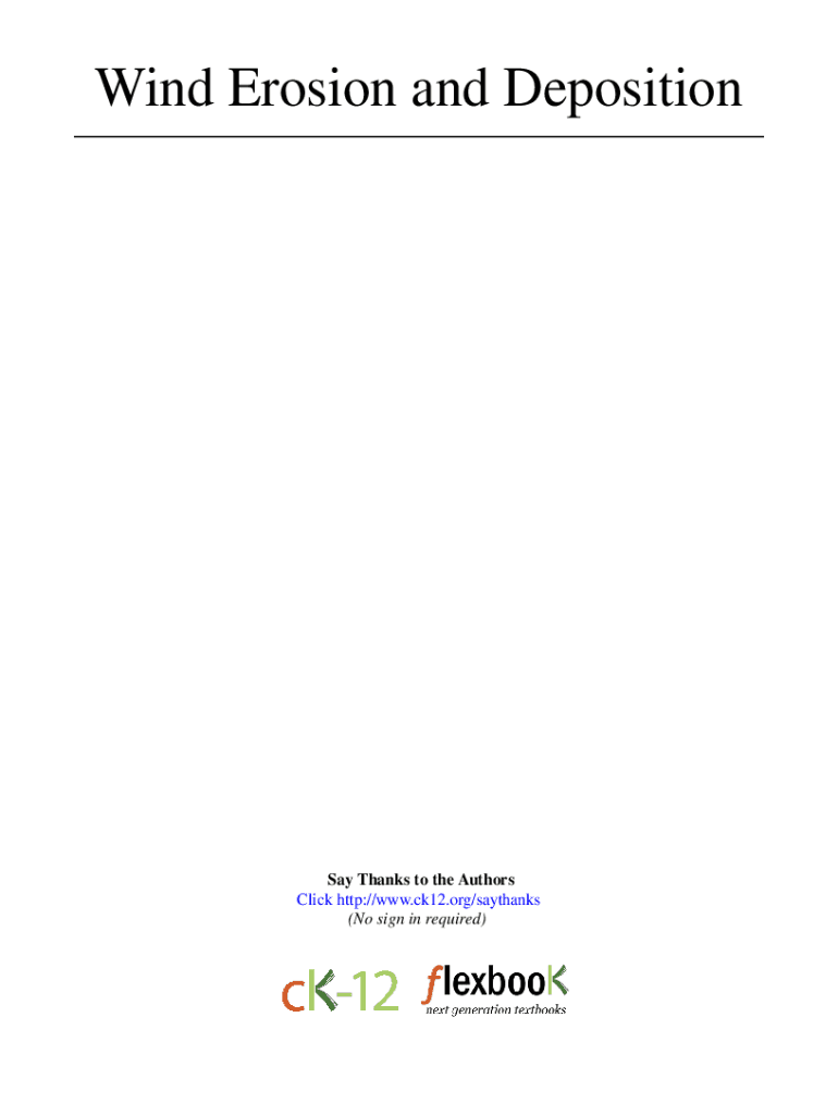 Wind Erosion and DepositionSay Thanks to the Authors Click http://www.ck12.org/saythanks (No sign in required)To access a customizable version of this book, as well as other interactive content, visit