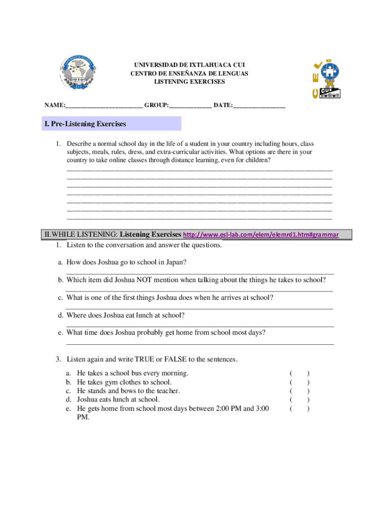 Teachers and educators who are implementing listening exercises in their curriculum are required to file i pre-listening exercises 1.