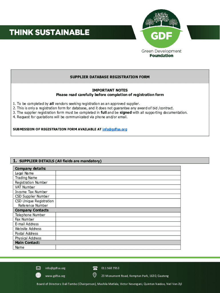 Get the free Registration form to register as a supplier on the database ...
