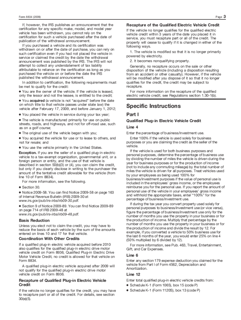 Form 8834 (2009)PageIf, however, the IRS publishes an announcement that the certification for any specific make, model, and model year vehicle has been withdrawn, you cannot rely on the certification