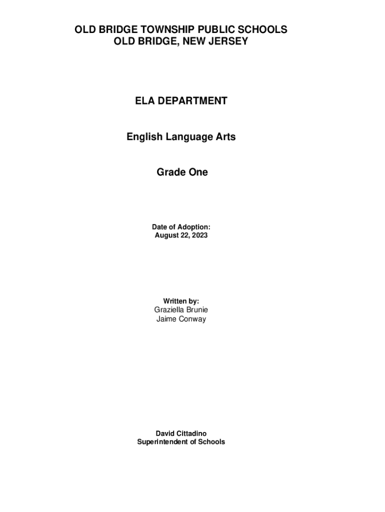 OLD BRIDGE TOWNSHIP PUBLIC SCHOOLS OLD BRIDGE, NEW JERSEYELA DEPARTMENTEnglish Language ArtsGrade OneDate of Adoption: August 22, 2023Written by:Graziella Brunie Jaime ConwayDavid Cittadino Superintendent