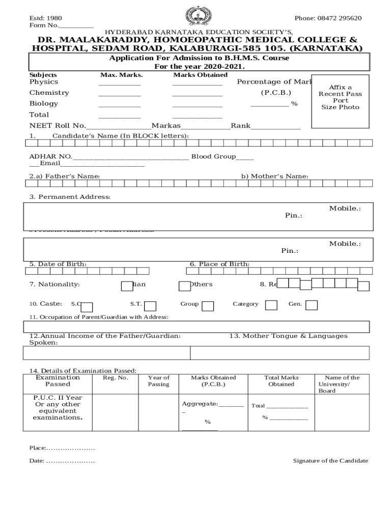 Instructions for the form All are Cordially... - Hyderabad Karnataka Education Society