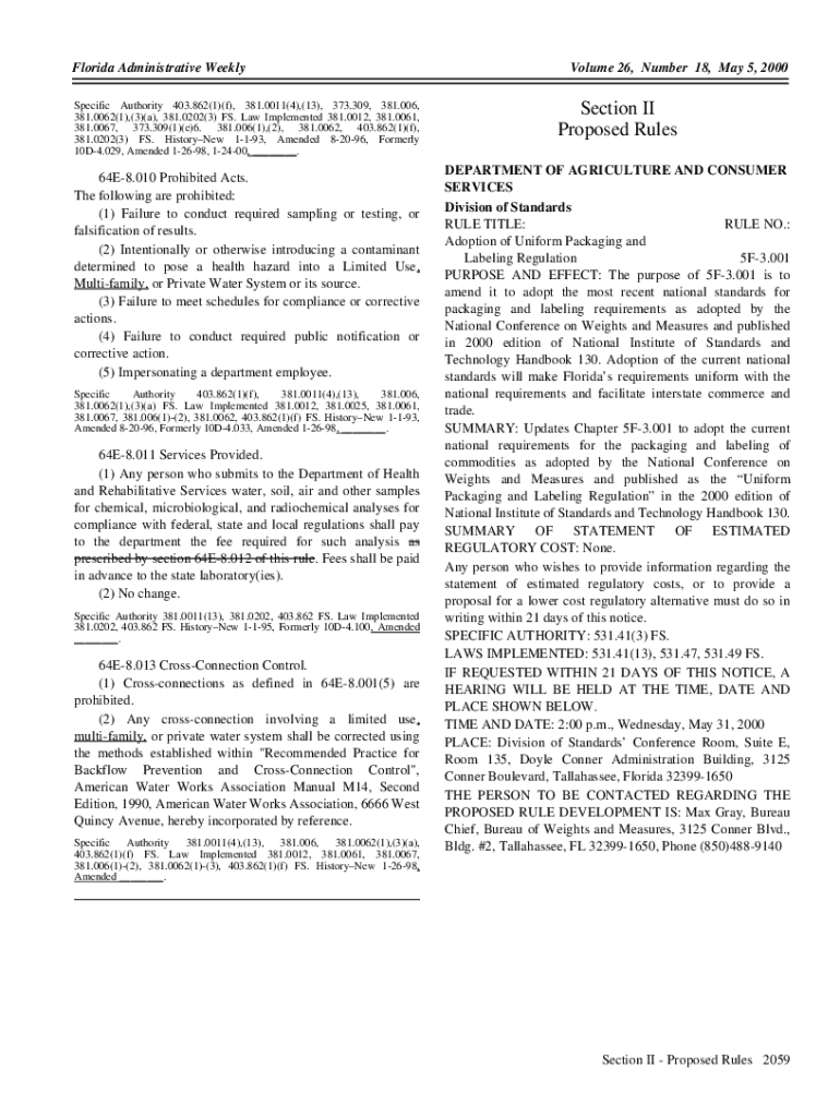 Florida Administrative Weekly Specific Authority 403.862(1)(f), 381.0011(4), (13), 373.309, 381.006, 381.0062(1), (3)(a), 381.0202(3) FS. Law Implemented 381.0012, 381.0061, 381.0067, 373.309(1)(e)6.