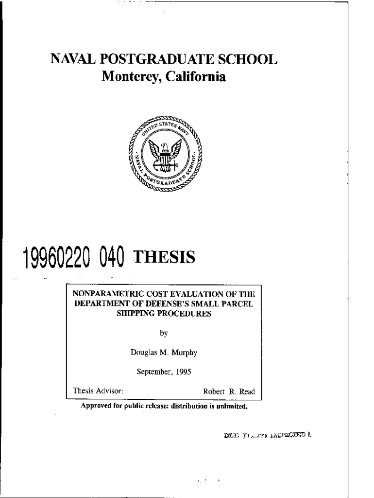 NAVAL POSTGRADUATE SCHOOL Monterey, California19960220 040THESISNONPARAMETRIC COST EVALUATION OF THE DEPARTMENT OF DEFENSE\'S SMALL PARCEL SHIPPING PROCEDURES by Douglas M. Murphy September, 1995