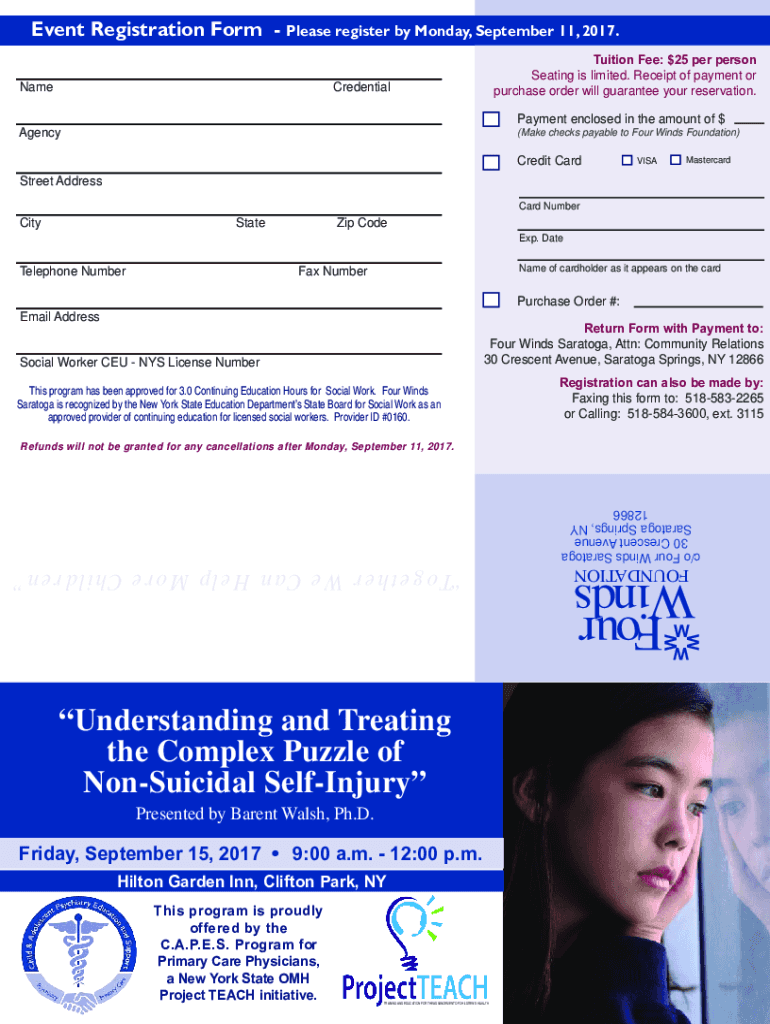 Event Registration Form Please register by Monday, September 11, 2017. Tuition Fee: $25 per person Seating is limited. Receipt of payment or purchase order will guarantee your reservation.NameCredentialPayment