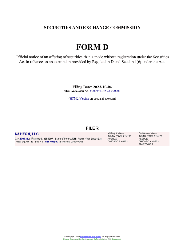 Get the free N3 HECM, LLC Form D Filed 2023-10-04. Accession Number