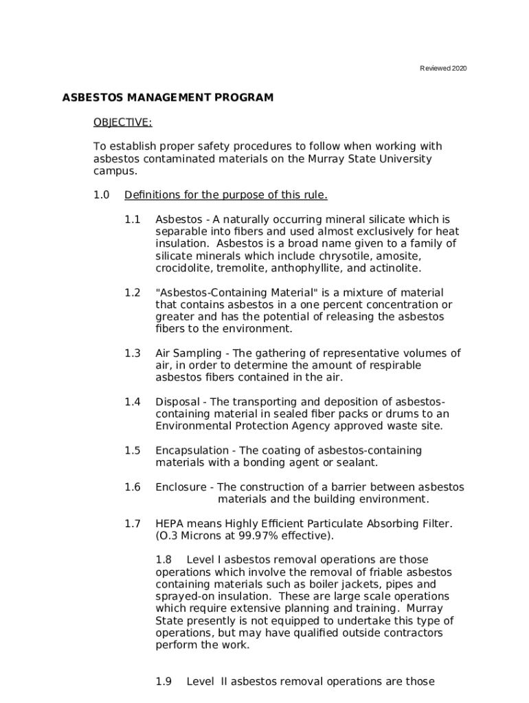 Instructions for the form Asbestos Management Program - Environment, Health & Safety