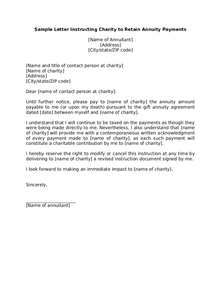 Sample Gift Annuity Disclosure Statement/Letter template instructions