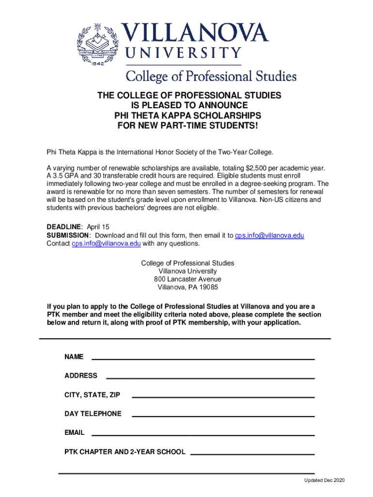 THE COLLEGE OF PROFESSIONAL STUDIES IS PLEASED TO ANNOUNCE PHI THETA KAPPA SCHOLARSHIPS FOR NEW PARTTIME STUDENTS! Phi Theta Kappa is the International Honor Society of the TwoYear College. A varying