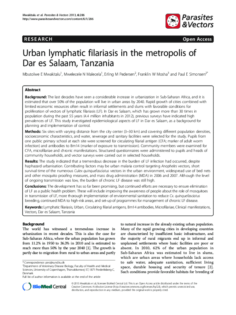 Get the free Urban lymphatic filariasis in the metropolis of Dar es ...