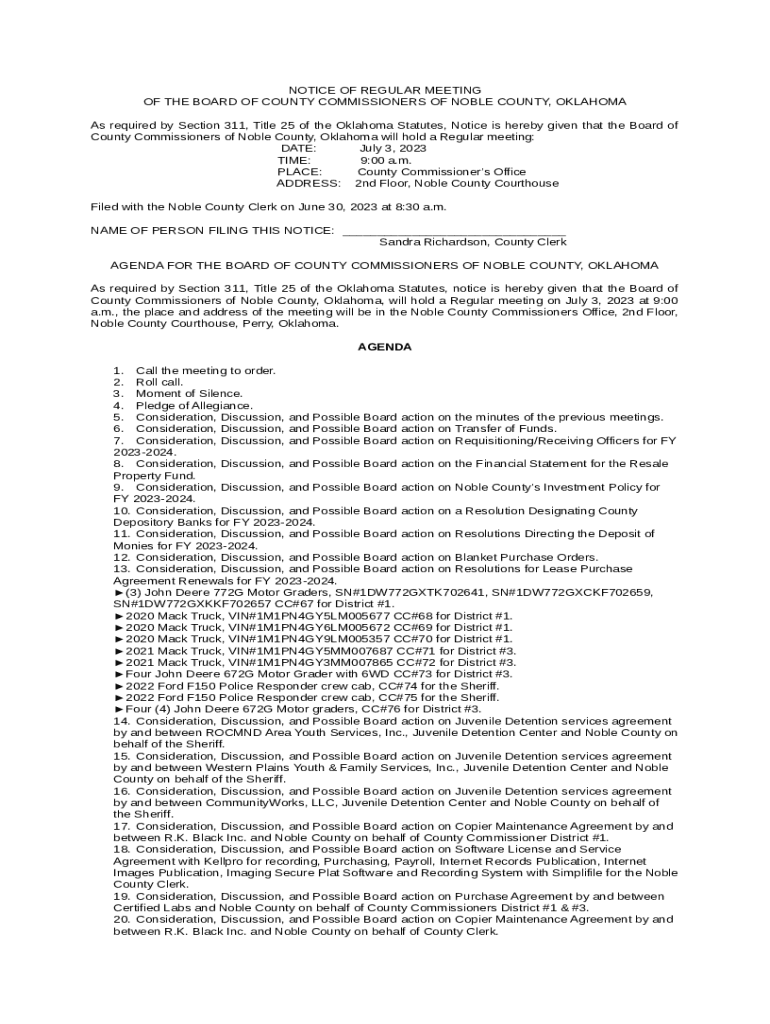 Template Filed with the Noble County Clerk on June 30, 2023 at 8:30 a instructions
