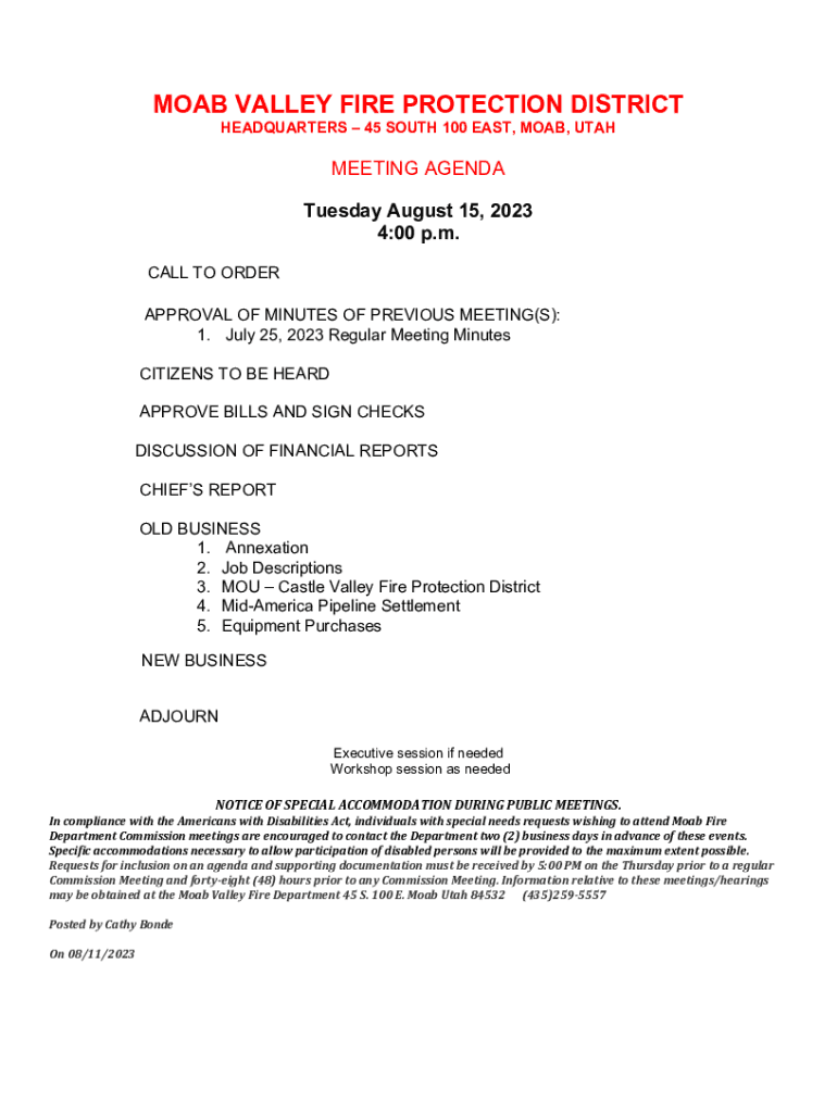 MOAB VALLEY FIRE PROTECTION DISTRICT