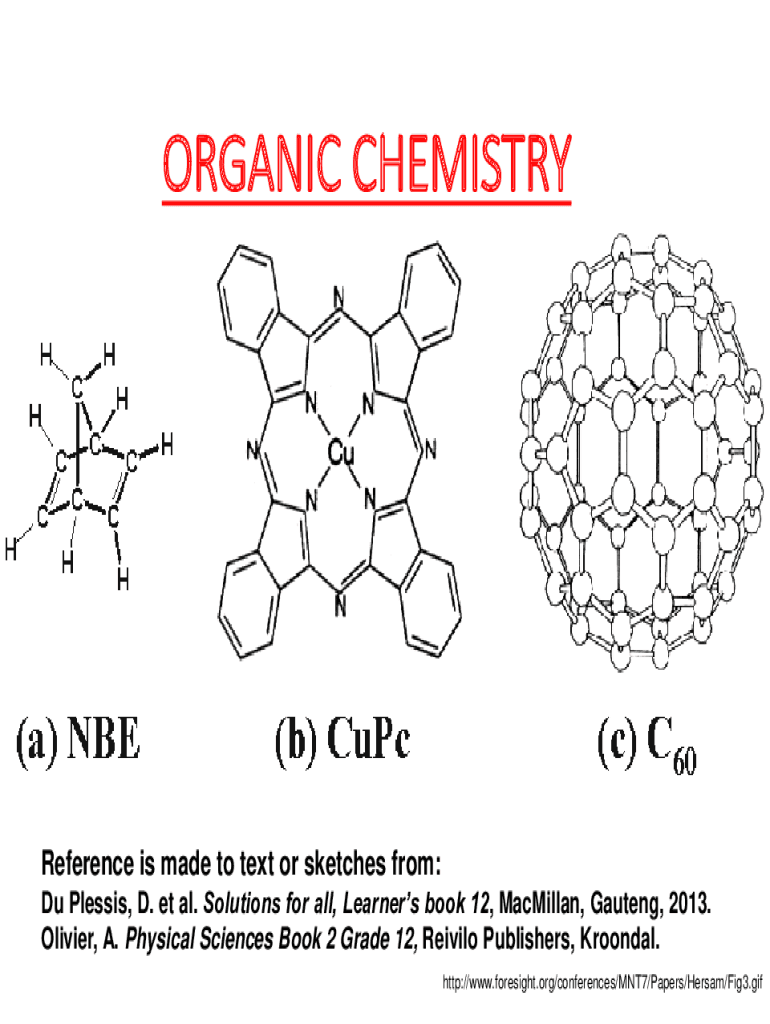 ORGANIC CHEMISTRYReference is made to text or sketches from: Du Plessis, D. et al. Solutions for all, Learners book 12, MacMillan, Gauteng, 2013. Olivier, A. Physical Sciences Book 2 Grade 12, Reivilo