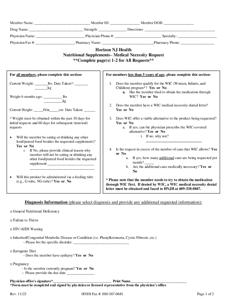 Gather all required information such as patient's name, date of birth, diagnosis, and necessary supplements.