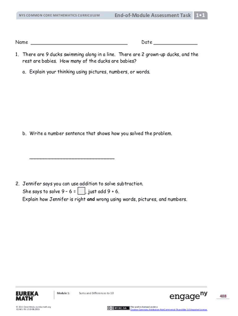 EndofModule Assessment Task LessonNameDate1. There are 9 ducks swimming along in a line. There are 2 grownup ducks, and the
