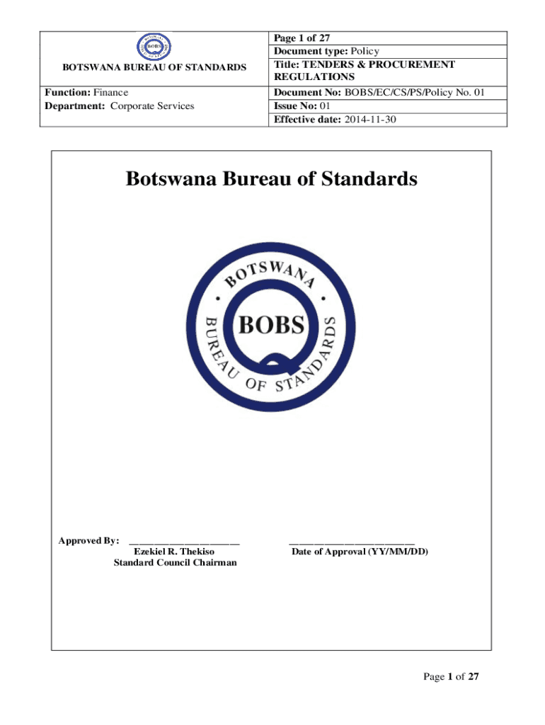 BOTSWANA BUREAU OF STANDARDSFunction: Finance