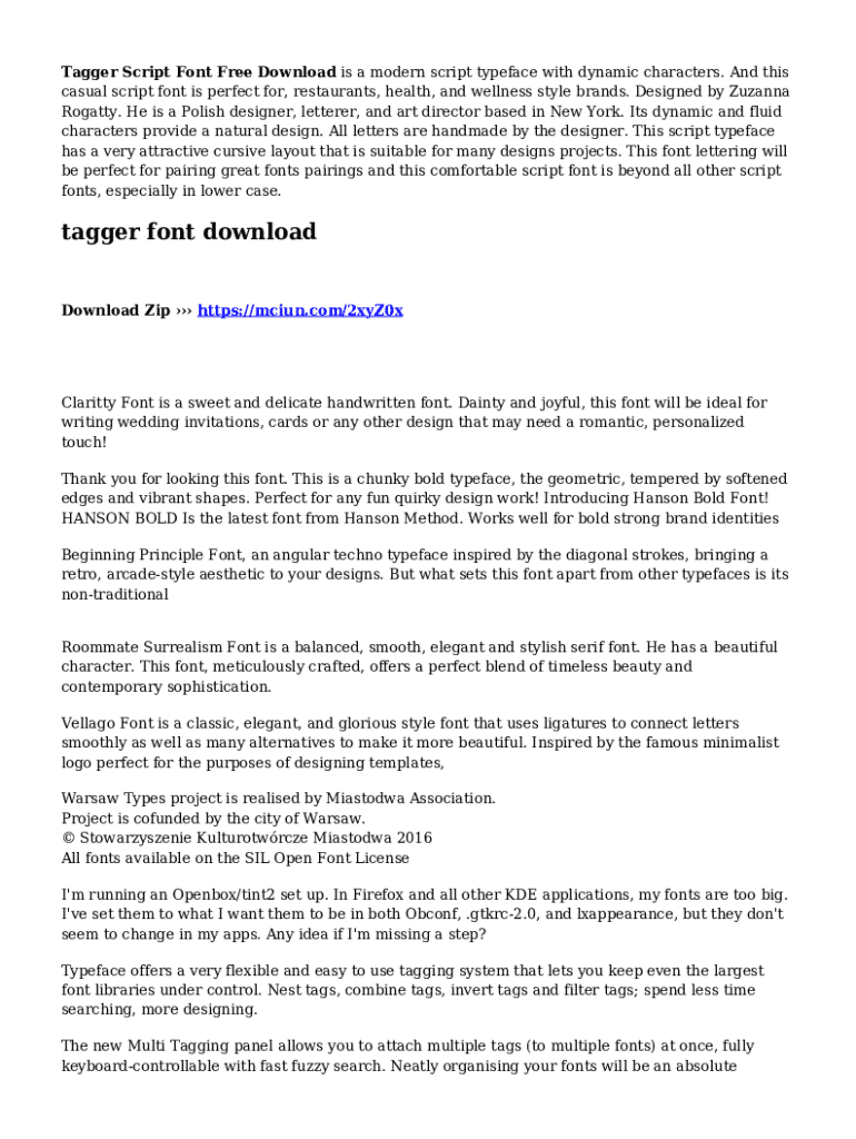 Tagger Script Font Free Download is a modern script typeface with dynamic characters. And this casual script font is perfect for, restaurants, health, and wellness style brands. Designed by Zuzanna