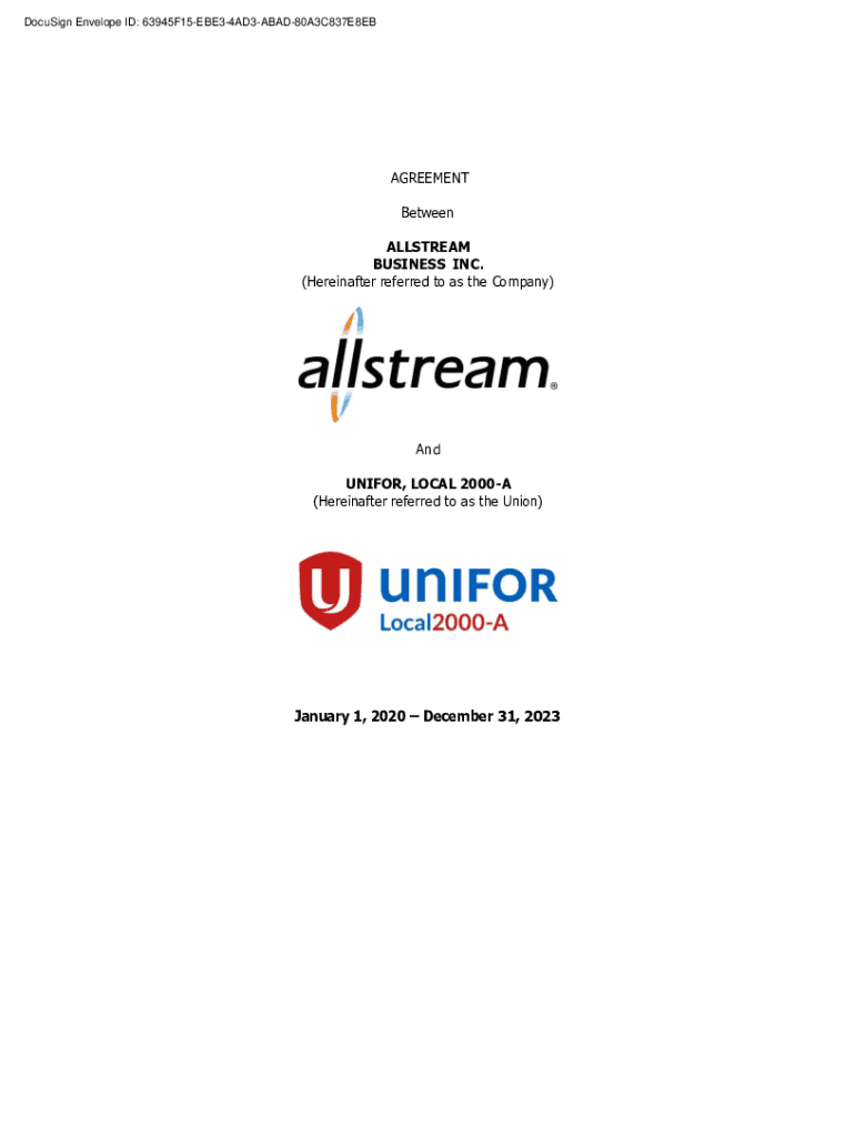 DocuSign Envelope ID: 63945F15EBE34AD3ABAD80A3C837E8EBAGREEMENT Between ALLSTREAM BUSINESS INC. (Hereinafter referred to as the Company)And UNIFOR, LOCAL 2000A (Hereinafter referred to as the Union)January