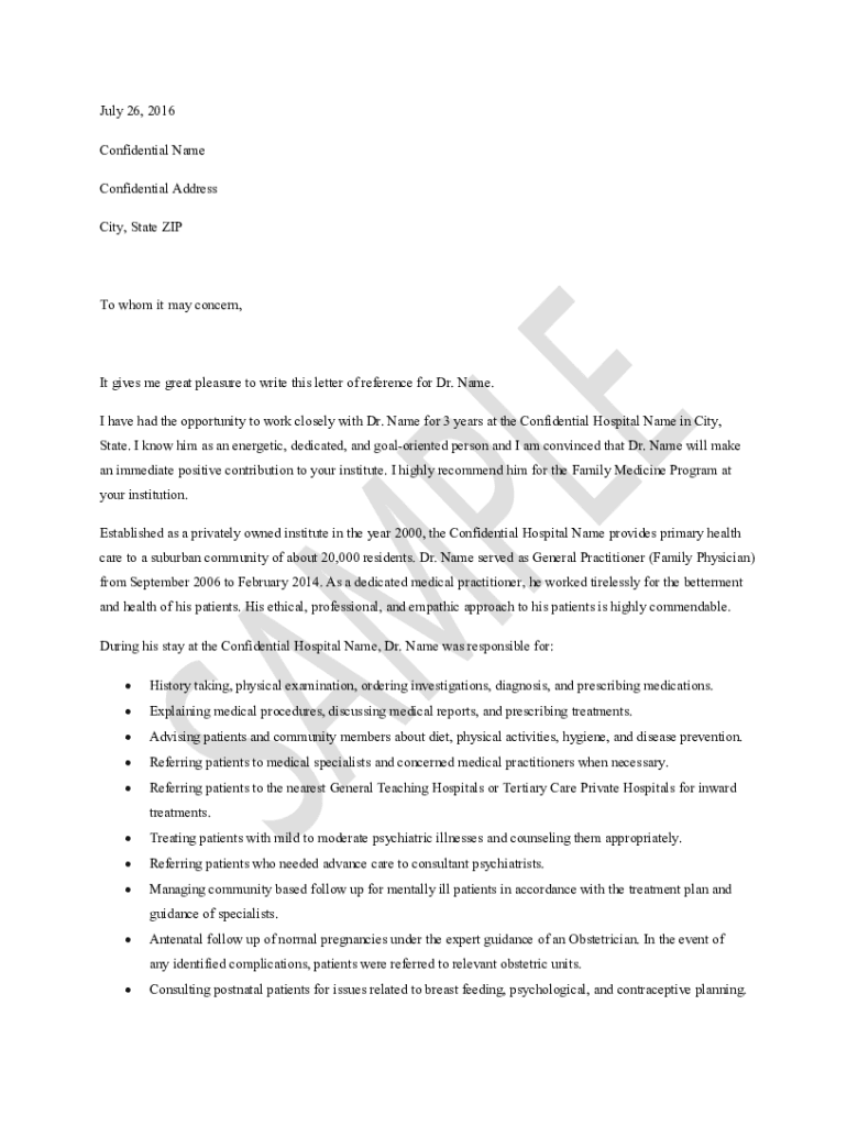 July 26, 2016 Confidential Name Confidential Address City, State ZIPTo whom it may concern,It gives me great pleasure to write this letter of reference for Dr. Name. I have had the opportunity to