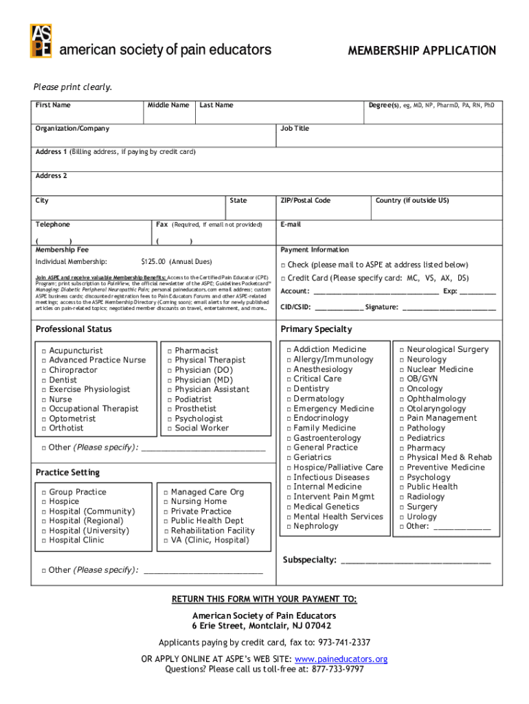 MEMBERSHIP APPLICATION Please print clearly. First NameMiddle NameLast NameOrganization/CompanyDegree(s), eg, MD, NP, PharmD, PA, RN, PhD Job TitleAddress 1 (Billing address, if paying by credit card)
