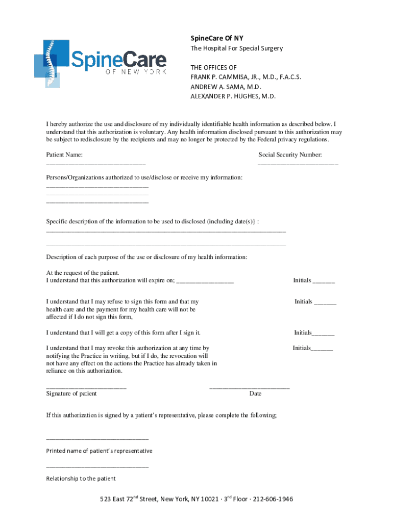 Get the free SpineCare of NYIntegrated Spine CareHSS Orthopedic ...