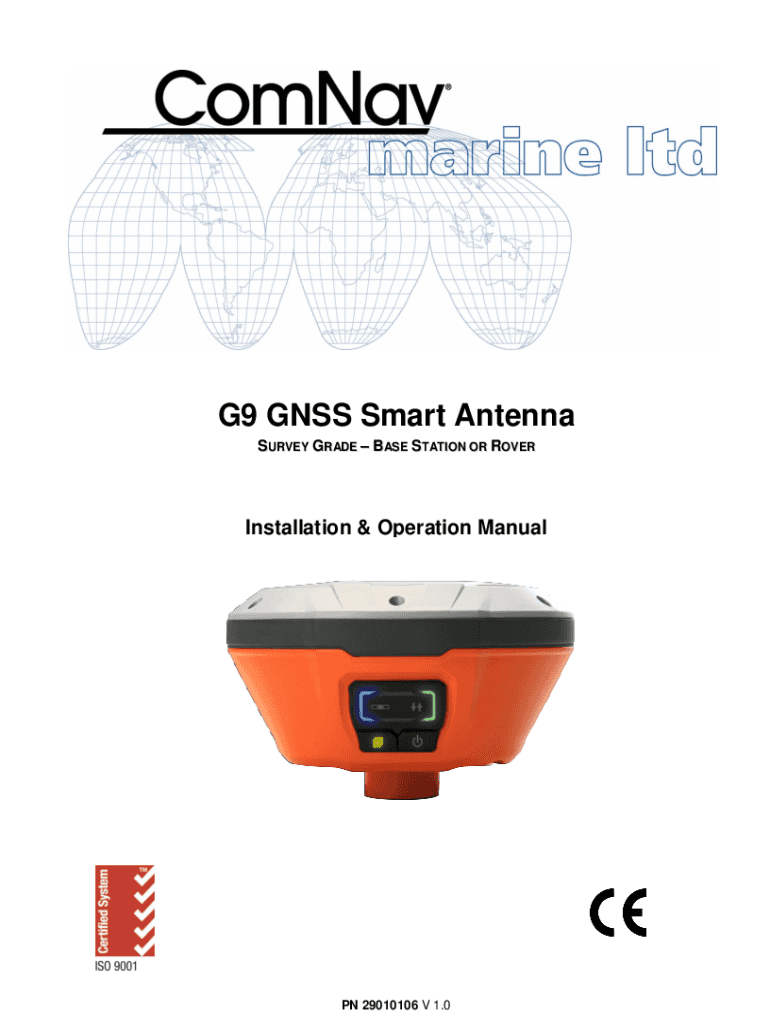 G9 GNSS Smart Antenna SURVEY GRADE BASE STATION OR ROVERInstallation & Operation ManualPN 29010106 V 1.0ComNav G9 Installation & OperationWelcome Congratulations on your purchase of a ComNav G9 Smart