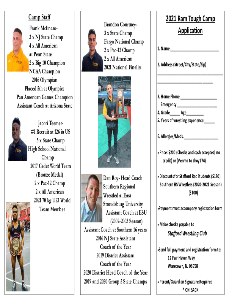 Camp Staff Frank Molinaro3 x NJ State Champ 4 x All American at Penn State 2 x Big 10 Champion NCAA Champion 2016 Olympian Placed 5th at Olympics Pan American Games Champion Assistant Coach at Arizona