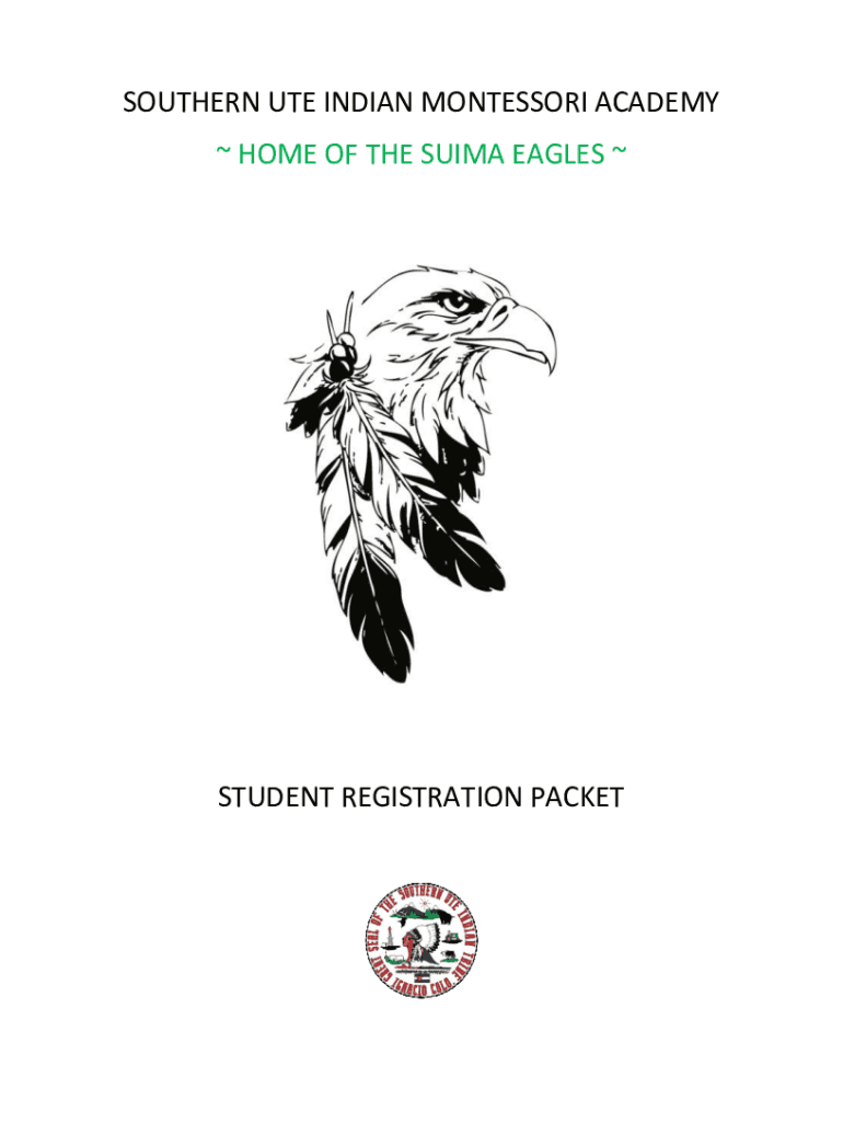 SOUTHERN UTE INDIAN MONTESSORI ACADEMY HOME OF THE SUIMA EAGLES STUDENT REGISTRATION PACKETRegistering for ___ Infant (Birth 18 months) Toddler (18 36 months) Primary (3 6 years) Elementary I (7 12